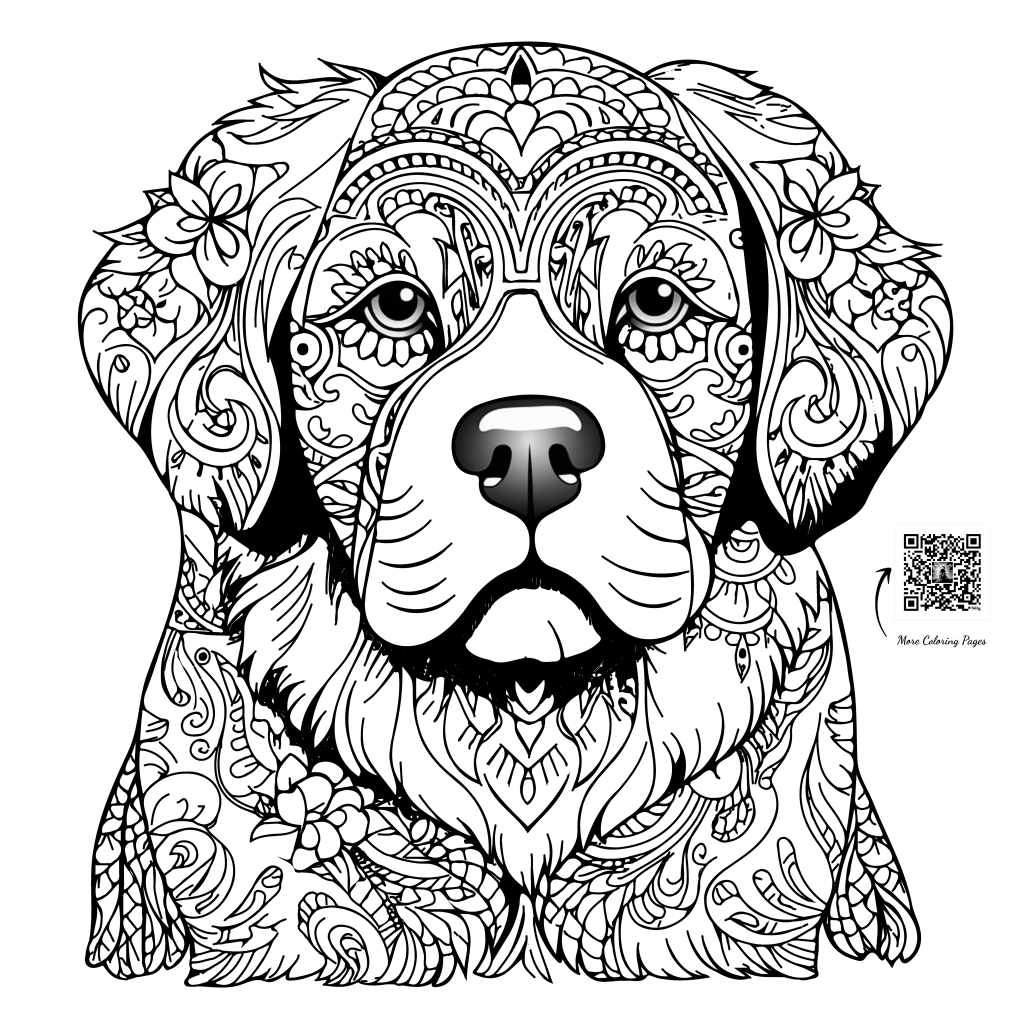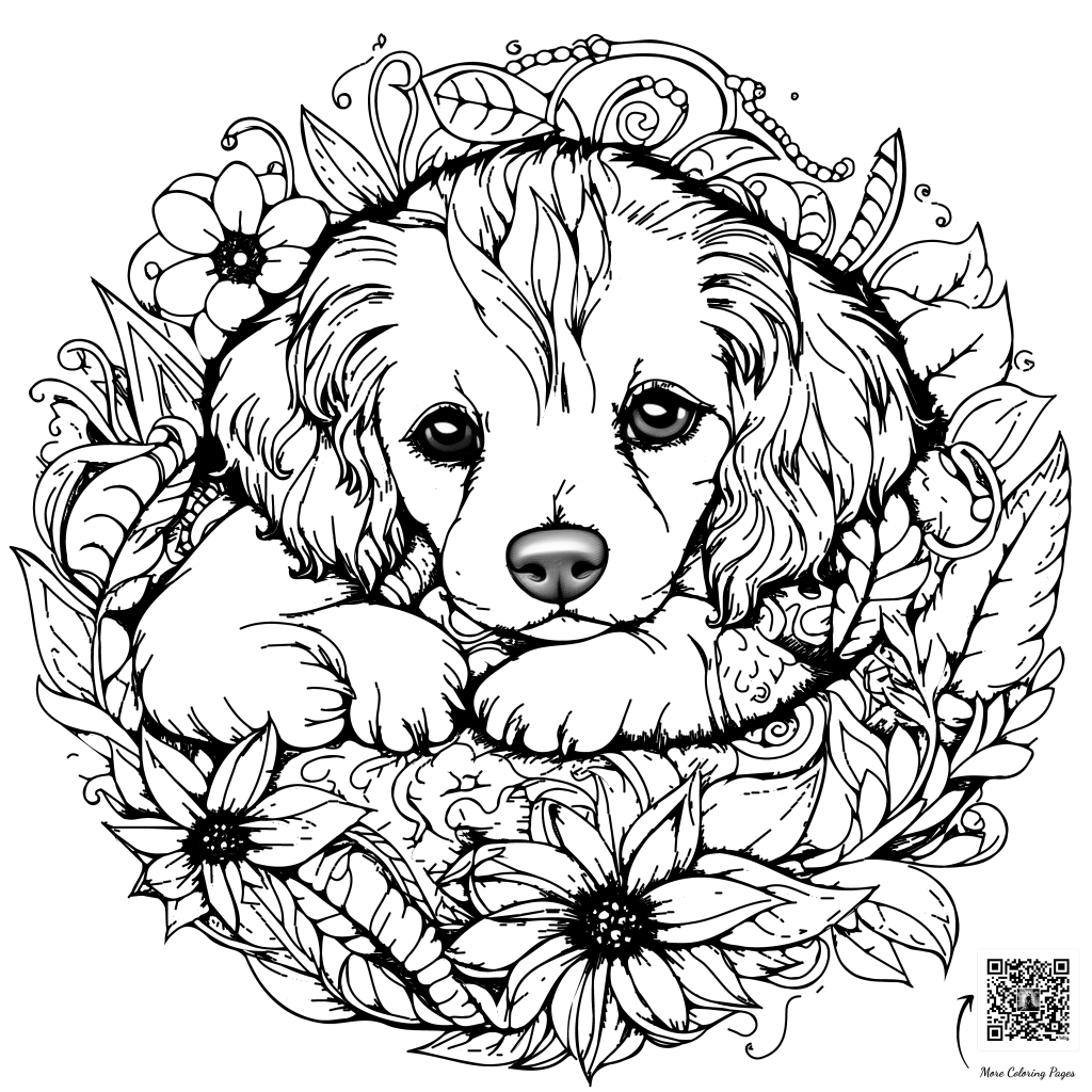 • Unwind and relax by coloring puppies